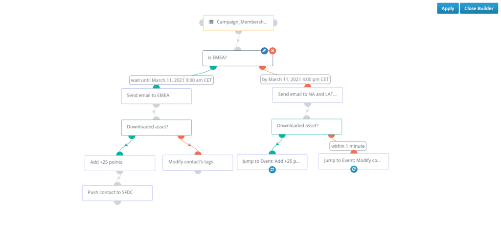Creating a well-structured email in Acquia Campaign Studio can be done in few steps. You can choose from the well-designed templates or add your custom HTML code. Acquia Campaign Studio’s built-in email creator is straight-forward to use with drag and drop features, yet customizable at a high level. Campaign Builder is where your marketing automation plan lives and it has a self-explanatory view. You can create anything, from simple onboarding campaigns to complex nurturing automation plans with a single campaign creation view and easy to be understood by everyone. By adding custom labels, you can name each step in your journey without the need to remember the internal names of segments and emails.