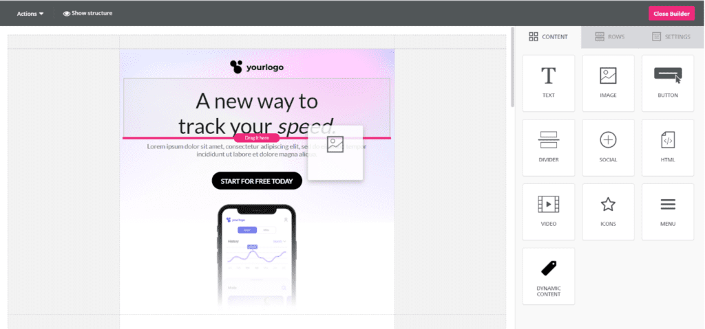 What I love the most about ACS is its user interface. Unlike many other CRM and MA tools that require time and dedication to learn and get used to them, getting along with Acquia Campaign Studio is easy because of its intuitive and well-organized view. As an illustration let’s have a look at the email and campaign builder.